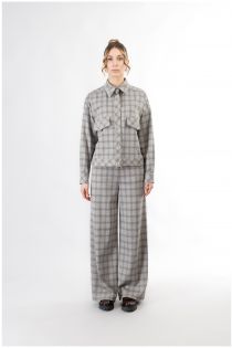 Unlined bomber-style jacket made of prince of wales stretch fabric. button closure. it matches perfectly with trousers made from the same fabric.