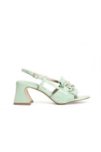Suede and napa sandals with fringes embellished with a jewelled chain. a shoe that can be worn all day long thanks to its 55 mm-high broad-base heel and comfortable base.