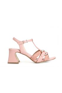 Suede and napa leather “t” model sandals with chain accessory. a shoe that can be worn all day long thanks to its 55 mm-high broad-base heel and comfortable base.