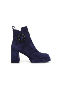 Women's suede ankle boot embellished with an elegant buckle 80mm heel and 20mm platform. the insole is leather. comfort and elegance at the same time and a unique character suitable for every outfit.