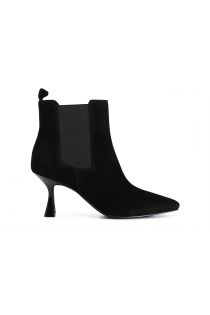 Women's slender suede ankle boot with a high 80 mm heel. side stretch panels make them easier to put on. the insole is leather.