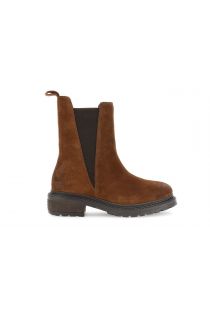suede ankle boots with asymmetrical elastics caramel