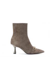 Suede ankle boots with an elegant gold-tone buckle, leather insole, and 7.5 cm stiletto heel. Perfect for refined, feminine looks from morning to night.