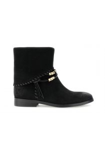 Suede boots with decorative laces and tasseled anklets. Fabric lining, leather insole, and a low 2.7 mm heel. Boho style and everyday comfort.