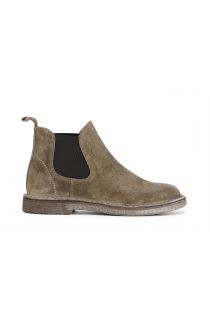 Suede ankle boots with stretch panels, upper stitched to sole