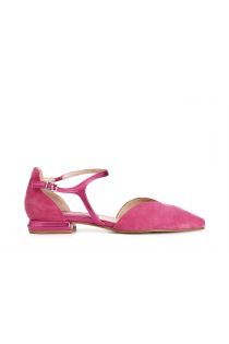 suede ballet flats with asymmetrical patent lace hot pink