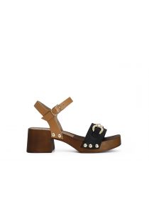 Wooden heel clogs in suede with horsebit. 24mm-high platform and 55mm-high heel. adjustable buckle strap at the ankle.