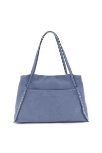 suede-effect shopping bag, practical front pocket, high-frequency logo light blue
