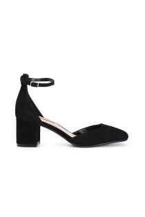 Suede pumps with ankle strap. the insole is in leather. the heel is 5.8 cm.