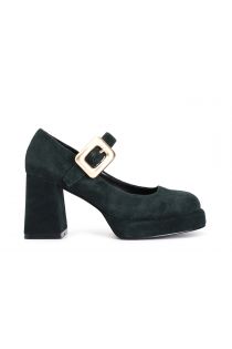 Suede court shoe with strap and buckle fastening. 80mm heel and 20mm platform. the insole is leather. comfort and elegance at the same time and a unique character suitable for every outfit.