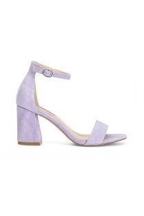 suede sandals with ankle strap and reinforced heel lilac