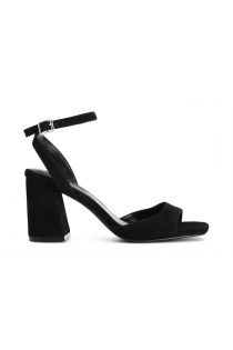 Suede sandals with ankle lacing. leather insole. wide 75 mm-high heel.