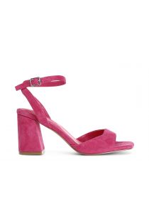 Suede sandals with ankle lacing. leather insole. wide 75 mm-high heel.