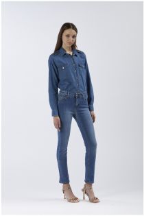 Super-stretch denim canvas jeans with slim fit.