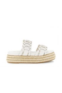 synthetic leather-effect sandal with two straps and raffia wedge off white