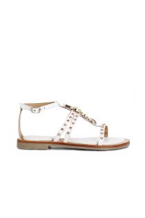 "t" sandal in nappa with studs and multicolor stones. the lining and insole are in leather. the heel is high h. 1.5 cm. comfortable shoe even after several hours of use and perfect to combine with multiple looks.