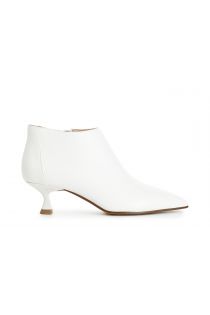 Tapered leather ankle boots with inner side zip to make them easier to put on. 45 mm-high reel heel. fashionable yet wearable everyday footwear to meet the demands of a dynamic lifestyle.
