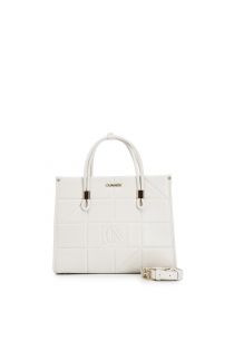 Tote bag with embossed quilting effect in a geometrical pattern. tubular handles and gold details. zip closure. bag with shoulder strap.