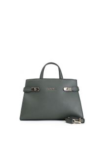 tote in cork effect material with metal closures green