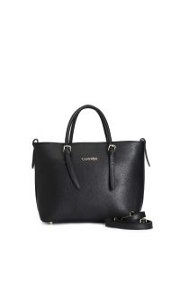 tote in grainy material and suede effect on the front dial, handle attachment black