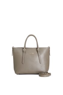 tote in grainy material and suede effect on the front dial, handle attachment mud