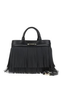 tote with fringes and logo on the front black