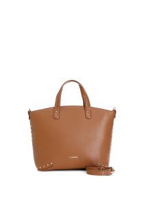 Rigid tote with handles. side and corner rivets. zip fastener. bag equipped with a handy compartment and a zipped pocket. bag with shoulder strap.