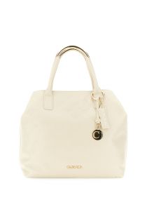tote with tubular handles and metal accessory taupe