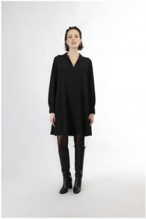 Tunic dress with collar made of fluid fabric. super soft fit does not mark the silhouette. versatile daily garment for different occasions of use to be worn either with a pair of knee-high boots or moccasins.