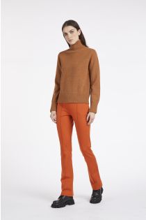 Turtleneck box sweater featuring a rib knit pattern on the hem