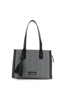 tweed fabric bag with tassel and logo detail black