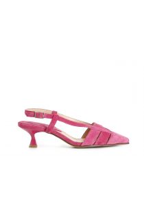 two-band suede court shoes with lace-up back hot pink