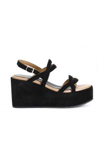 Suede wedge sandals with two bands. the insole is in leather. the wedge is 9.5 cm high. footwear that will make you feel comfortable every day. without giving up your style.