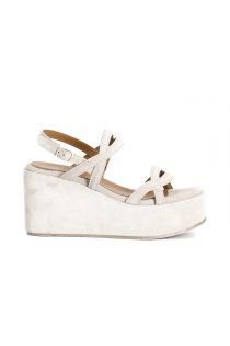Suede wedge sandals with two bands. the insole is in leather. the wedge is 9.5 cm high. footwear that will make you feel comfortable every day. without giving up your style.