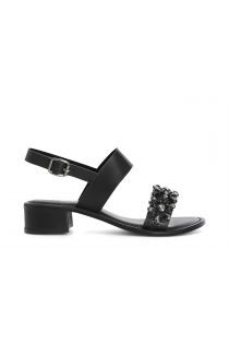 Two-strap leather sandals with rhinestone heel h. 35mm.