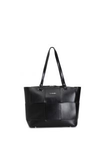 unlined shopping bag with braid of wide strips black