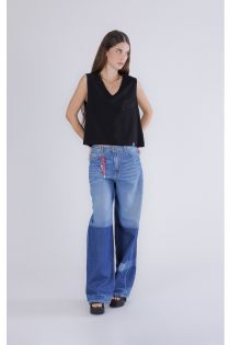 v-neck tank top in cotton jersey with embroidered logo black