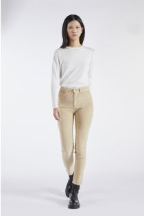 Garment-dyed high-waisted skinny fit trousers in soft embossed velvet with a precious painted button