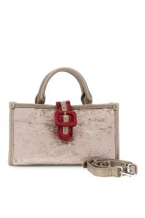 velvet mini bag with faux leather details mink/bordeaux