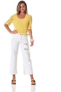JERSEY TOP IN VISCOSE WITH PUFFED LACE SLEEVES