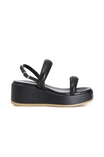 Fisherman sandals with rhinestone-clad straps. a comfortable wide wedge with a padded insole clad with napa leather.