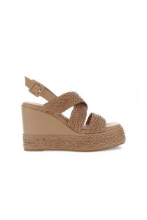 wedge sandals with crossover heel in woven synthetic leather effect tan