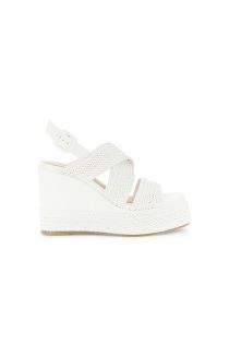 wedge sandals with crossover heel in woven synthetic leather effect white