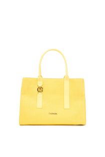 Square-shaped bag with matching handles and cafènoir accessory at the handle attachment.