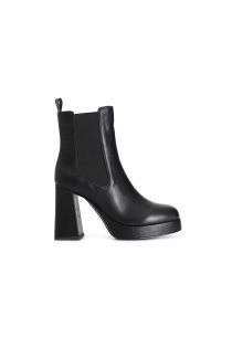 Women's ankle boot in imitation leather with side elastic bands to facilitate the fit. 22 mm platform and 100 mm high heel. rounded shape. the insole is in leather. all this gives balance between height beauty and comfort.