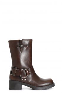 women's ankle boot with spur and buckles dark brown