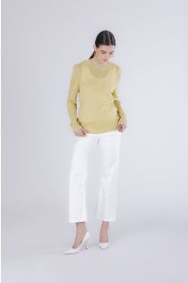 women's crew neck sweater in lurex yarn yellow