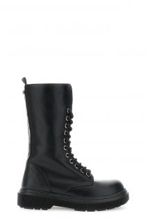 Iconic combat-style lace-up ankle boots in black faux leather. Fabric lining and sturdy 4 cm sole. Versatile best-sellers with a bold, urban look.