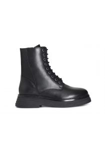 Women's leather ankle boot laced with elastic on the back. the insole is in leather.