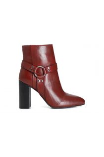 Slim-shaped women's leather ankle boot with spur accessory. zipper on the inside of the shoe. the insole is in leather. 95mm high heel.
